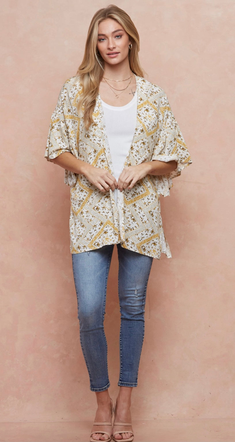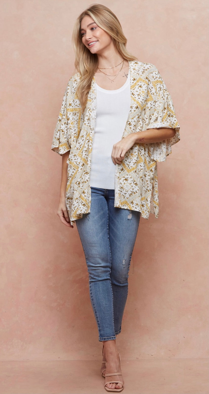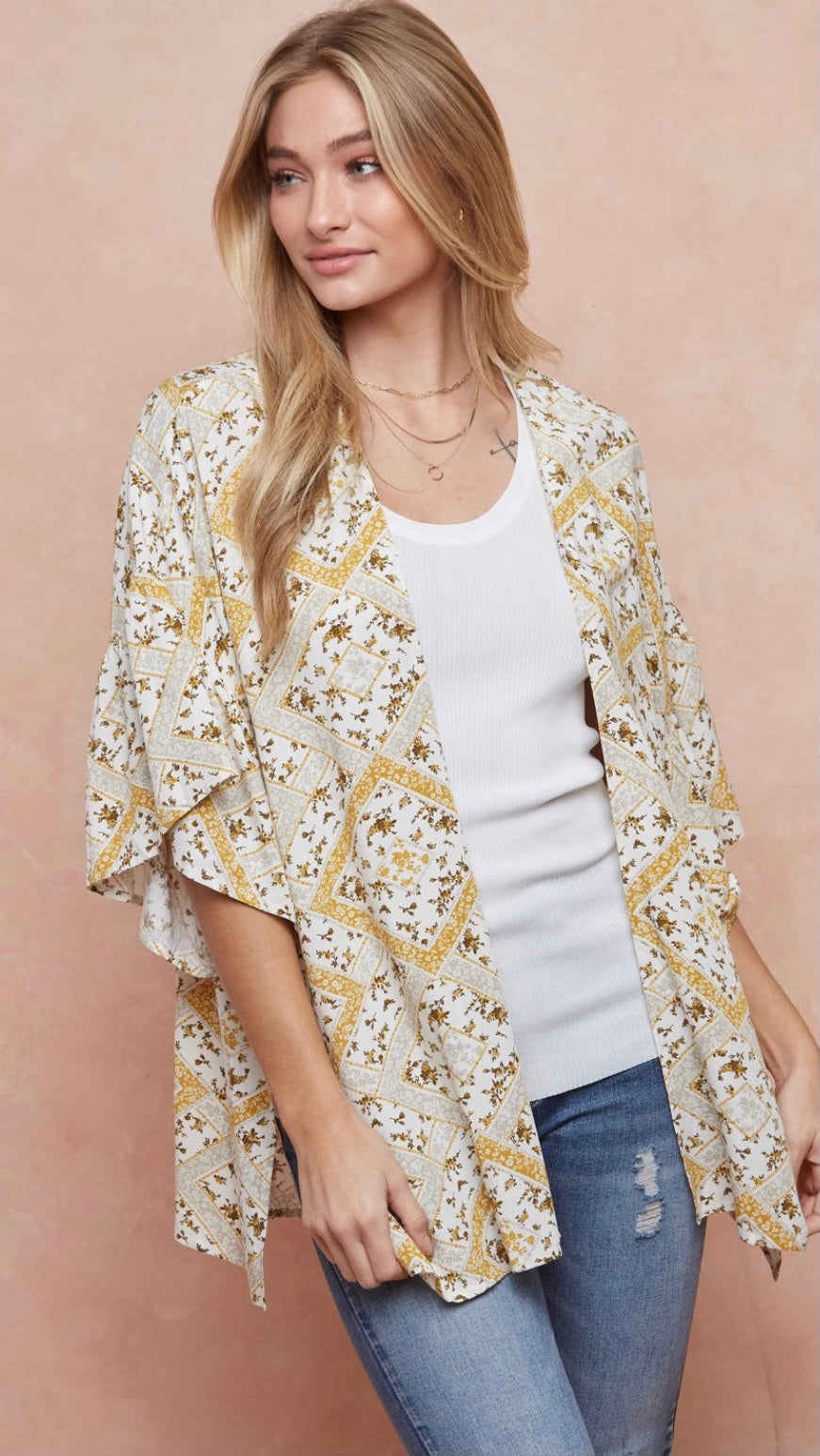 This beautiful patchwork kimono is the perfect piece to help you step into spring! Layer over a cute little tank and throw on your favourite denim and you will be all set for some warmer temps!