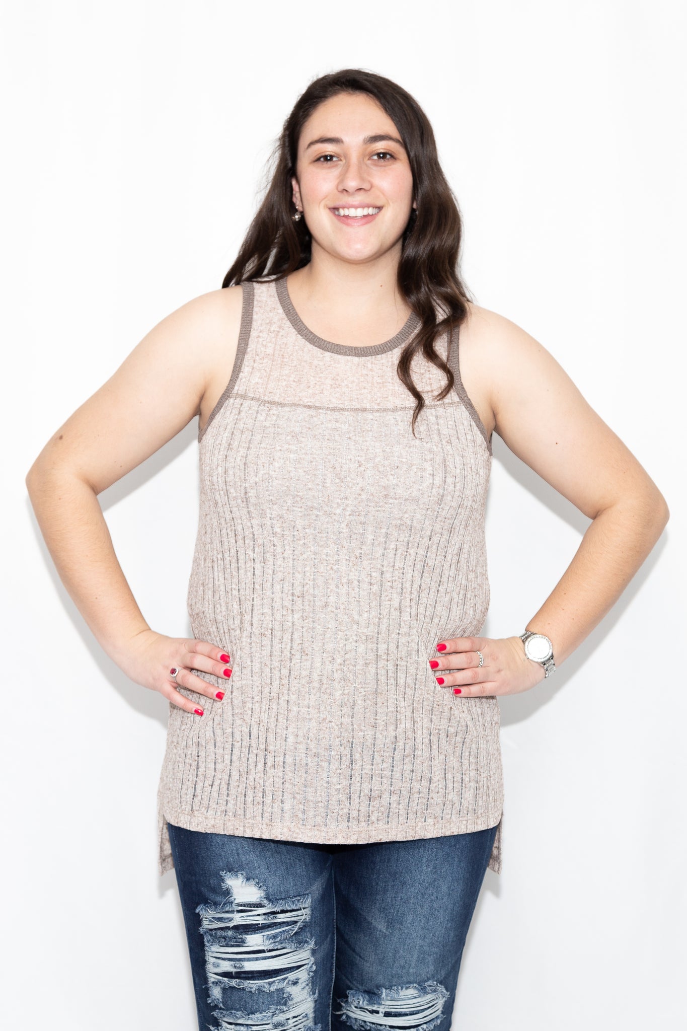 This high low lined mesh sleeveless top would be great paired with your favourite jeans and basic cardigan!